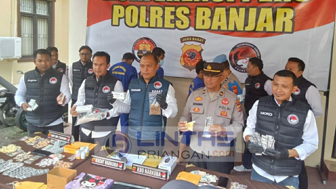 “Kami telah menangkap 10 orang, terdiri dari empat tersangka dewasa yang kini ditahan, tiga anak yang diserahkan ke BAPAS, serta tiga orang yang menjalani rehabilitasi di Badan Narkotika Nasional Kabupaten (BNNK) Ciamis,” katanya, Senin (14/04/2025) di Mapolres Banjar.