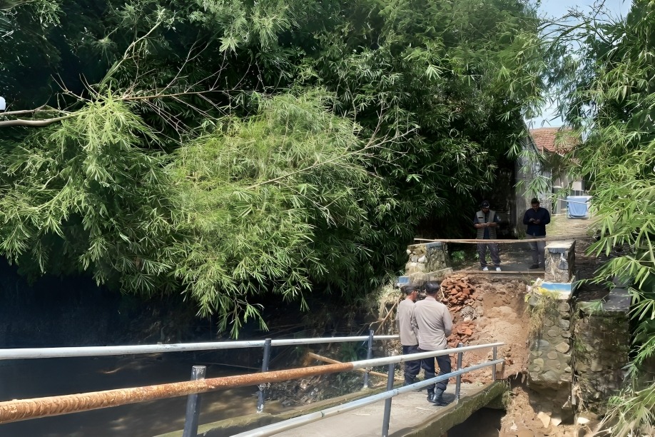 Jembatan penghubung dua desa di Majalengka ambruk akibat erosi Sungai Cikasarung, aktivitas warga lumpuh total.