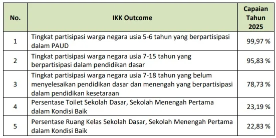 Kinerja Kunci (IKK) yang telah ditetapkan. Indikator tersebut digunakan untuk menilai tingkat keberhasilan penyelenggaraan urusan pendidikan dalam meningkatkan akses, mutu, dan pemerataan layanan pendidikan bagi masyarakat.